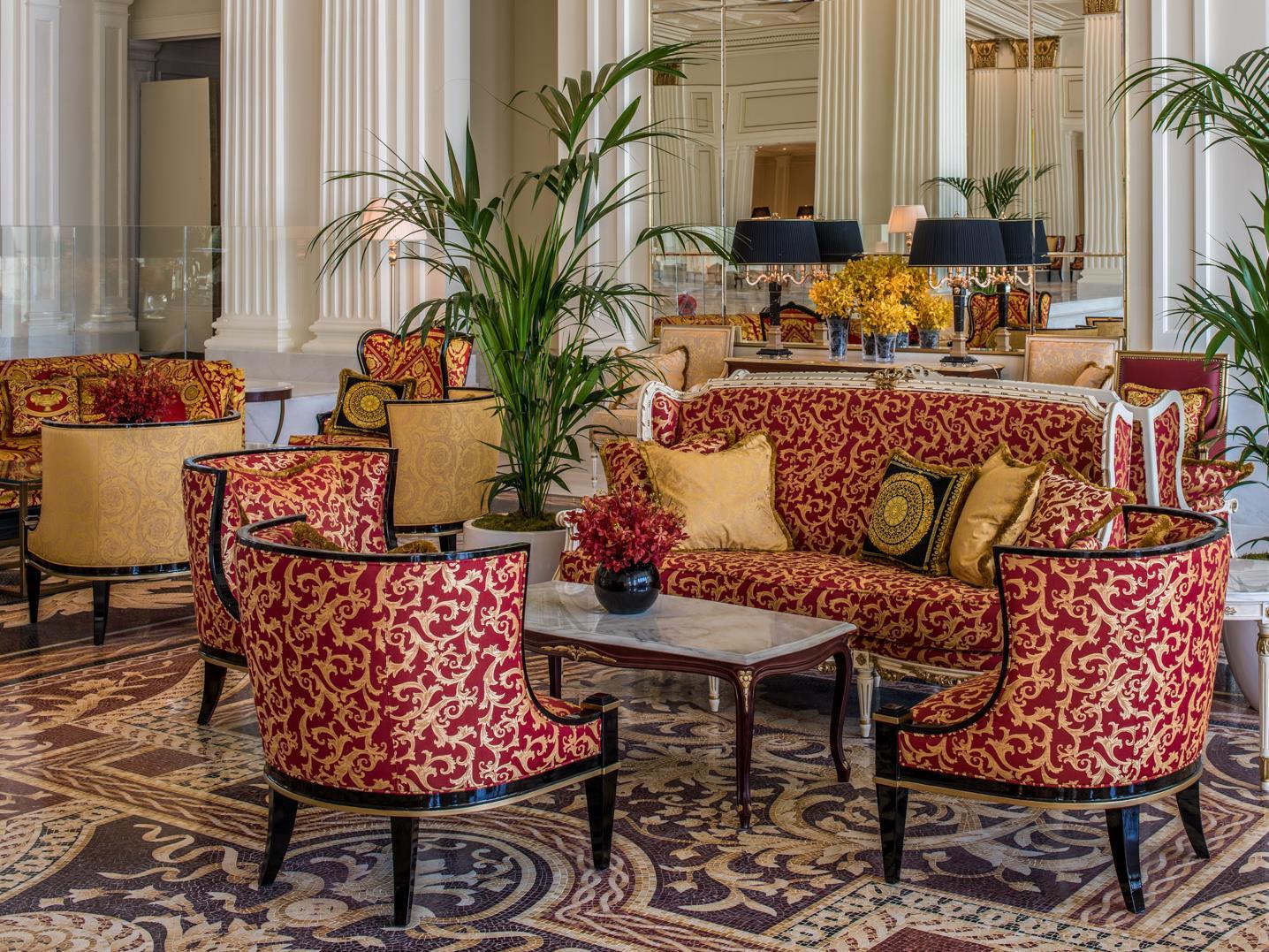 Словно итальянский дворец XVI века, Палаццо Версаче Дубай — шедевр неоклассического стиля с едва уловимыми чертами арабской архитектуры. Величественный вход, высокие потолки, ландшафтные сады и изысканная итальянская мебель: этот отель — само воплощение образа жизни в стиле Versace.