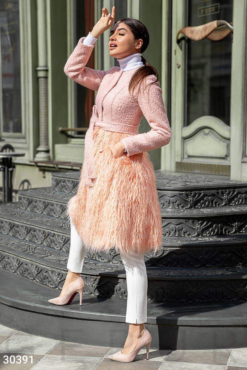 - Пальто-шуба из ламы имеет благородный розовый оттенок, который переливается на солнце. Обратите внимание, как здорово комбинирует этот роскошный наряд с элементами уличного стиля. Невероятно запоминающийся образ.