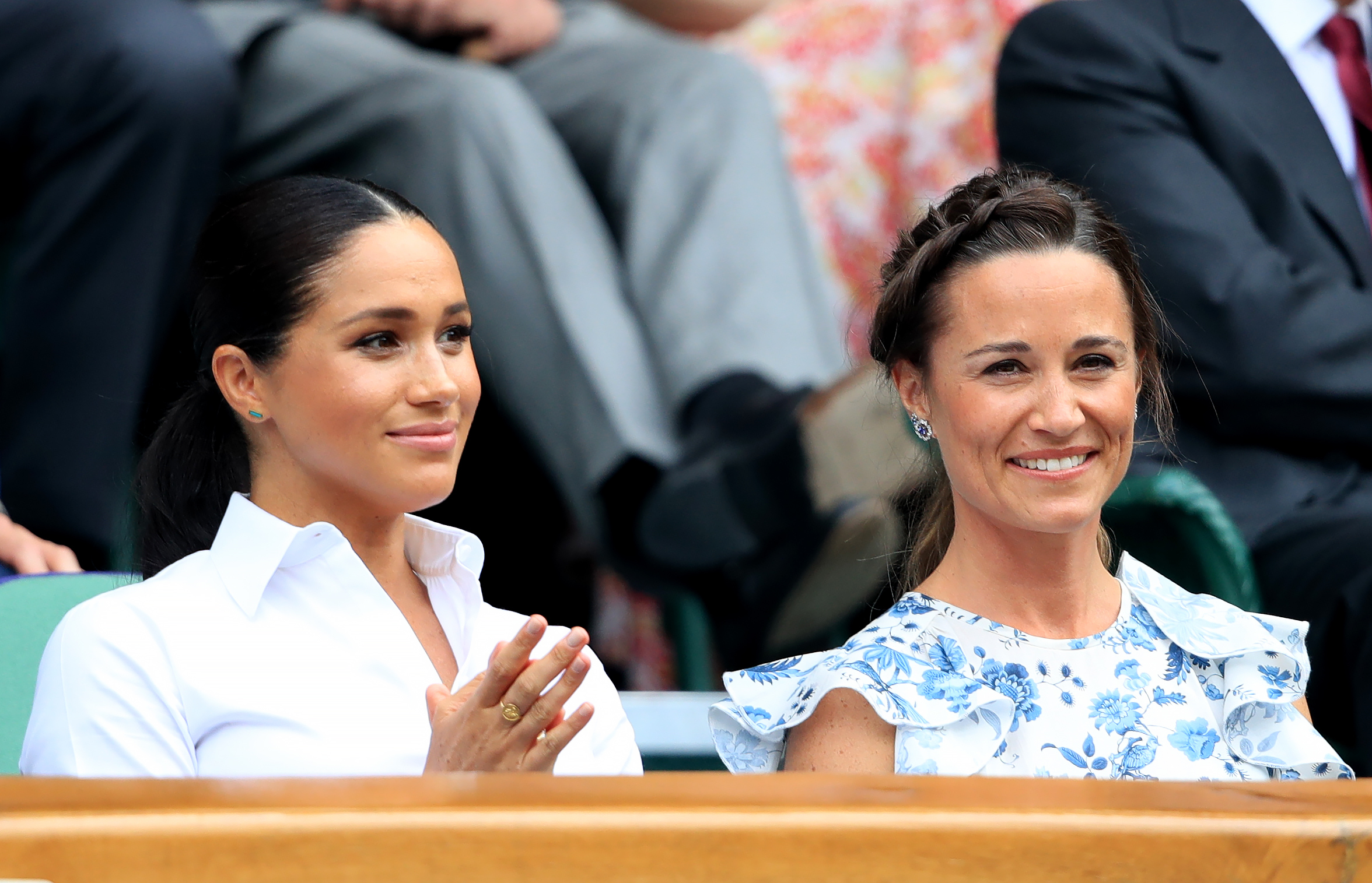 Кэтрин, герцогиня Кембриджская, Меган, герцогиня Сассекская и Пиппа Миддлтон в Королевской ложе в Уимблдоне, 13 июля 2019 г.