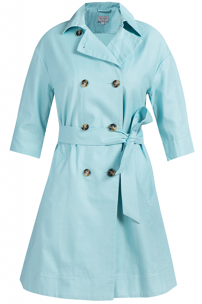 Отличительной особенностью модели плаща – френч является прямой и слегка приталенный крой, а также широкий пояс, изготовленный из того же материала, что и сам плащ.