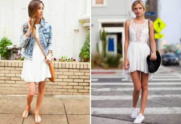 Короткие белые платья в модном варианте casual и casual smart отлично смотрятся с белыми кедами, что весьма удобно, практично и при этом красиво в качестве отличного лука на каждый день для стильных девушек.