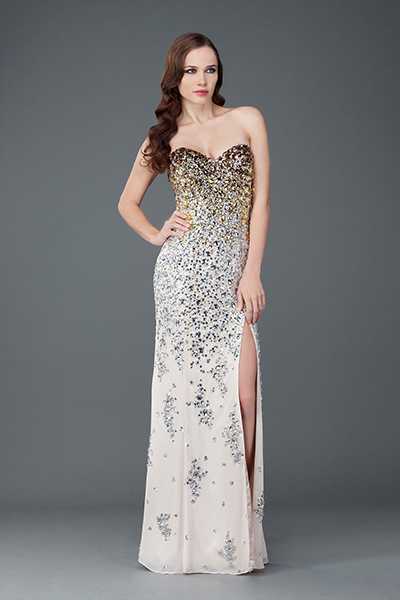 Модным дополнением вечерних нарядов считается и сексуальный разрез подола, открывающий ножки. Такой декор представлен в разных вариациях. Одним из самых популярных считается решение спереди. Эффектные разрезы могут украшать изделие и по бокам, и сзади. Дизайнеры предлагают фасоны с лаконичным дополнением или высокой формы до бедра. Последний вариант особенно популярен для нарядов из струящихся летящих тканей. Модным трендом стало белое шелковое платье в пол с разрезом. Беспроигрышным остается и вариант на запах, где такой декор создается естественно.