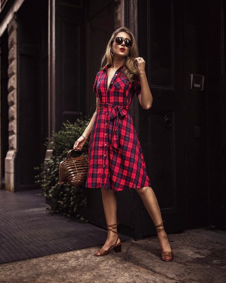 Платье в клетку с чем носить: какие аксессуары и обувь подобрать