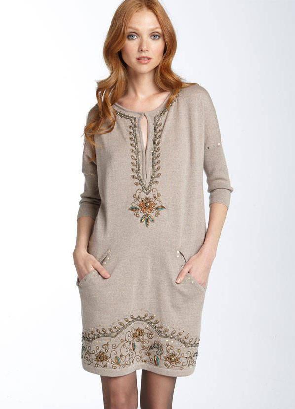 Стилисты, как всегда не боятся экспериментов, и поэтому в каждом новом модном сезоне предлагают нам все новые идеи. Так, например, необычный образ можно создать благодаря уникальному сочетанию вязаных свитеров со скандинавскими орнаментами с длинными легкими юбками, выполненными из шифона. Однако бывают и такие женщины, которые не ставят перед собой цель выделиться из общей толпы, но при этом не желают следовать модным тенденциям. В этом случае стилисты предлагают образ из серого платья прямого фасона, поверх которого можно накинуть тонкий кардиган или изящную накидку со скандинавскими орнаментами.