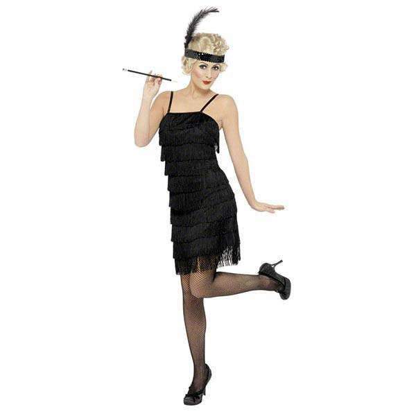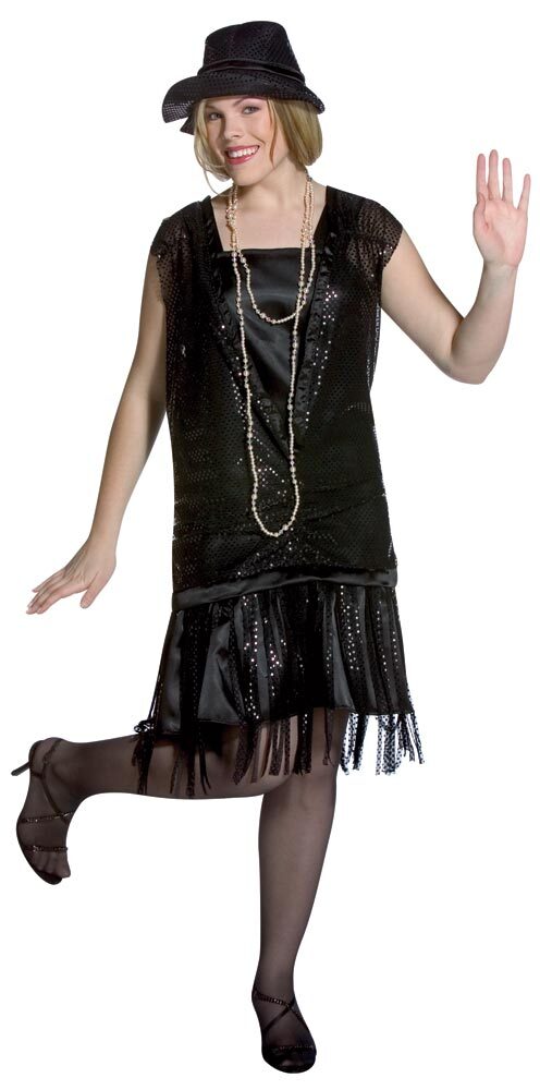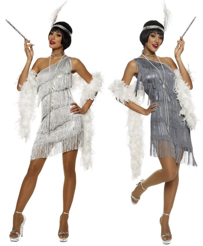 Наш магазин платьев и костюмов в стиле Чикаго 30 – х годов предлагает женские платья с бахромой и мужские черные костюмы в белую полоску.