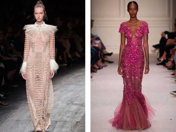 Смелым и дерзким девушкам подойдет вариант «голого» платья с вышивкой. Модель представлена прозрачной тканью, покрытой вышивкой. Обычно вышивка позволяет прикрыть необходимые участки тела. Такое платье будет смотреться одновременно нежно, женственно и оригинально.