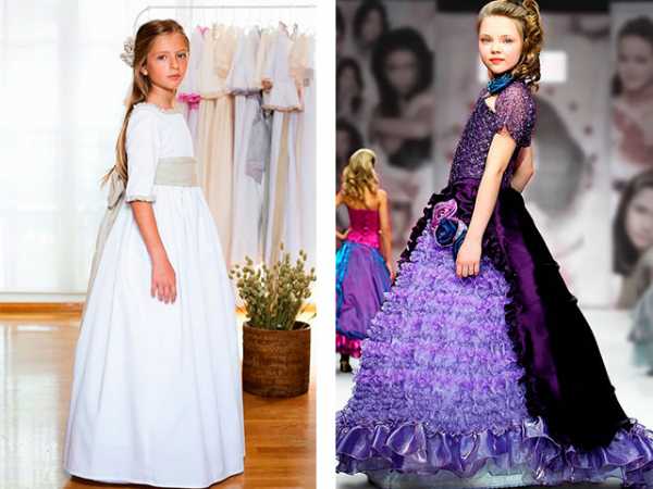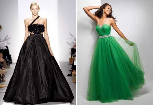 Разновидностей торжественных нарядов существует немало. Подчеркивают достоинства силуэта девушки прямые лекала, годе, трапецией. Приталенные, клешеные, длинные платья в пол великолепно подходят для праздника, они выигрывают рядом с мини. Актуальными считаются такие модели: