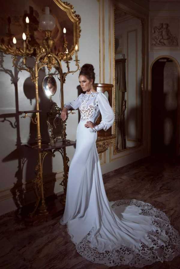Для особенных случаев, например, для свадьбы, длинное платье поможет создать элегантный и женственный образ. Закрытые руки и закрытый верх в моде. Очень романтичны кружевные рукава и верх длинного наряда из аналогичного материала. Такой выбор идеален для венчания. Очень хорошо выбрать подобное платье полным невестам, так как пухлые руки и плечи, а также бледная кожа прекрасно маскируются таким фасоном. Длинная струящаяся юбка, плавно переходящая в шлейф, силуэт вытянет. Ажурный рукав, прозрачная ткань и вышитый узор – свадебное платье такого фасона гарантирует море восхищения невесте.