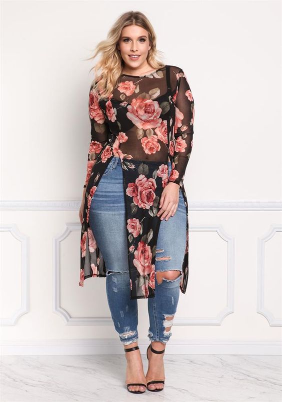Принты не все подходят. Крупный, контрастный рисунок утяжеляет фигуру, мелкий не украшает, потому что смотрится нелепо на крупной женщине. Оптимальным будет принт среднего размера. Украшает пышек размытый (акварельный) цветочный или растительно-цветочный рисунок.
