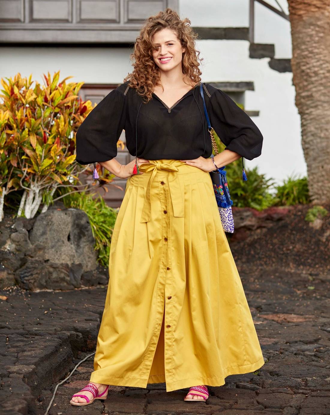 Юбка, расширяющаяся книзу, визуально уменьшает объем живота, бедер, маскирует излишнюю полноту ног.