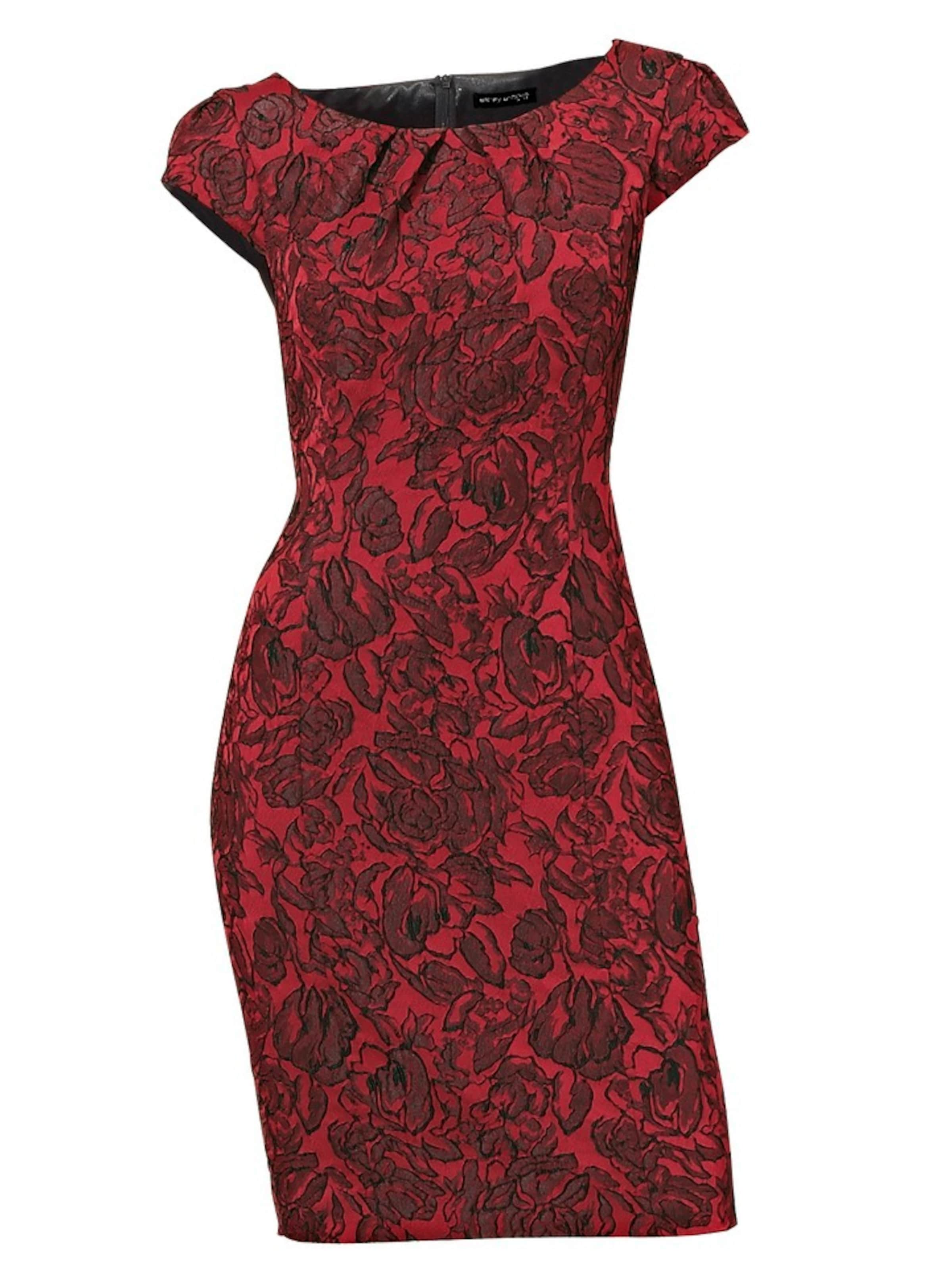 Красоту жаккардовой ткани способно подчеркнуть только простое лаконичное платье, такое как футляр.