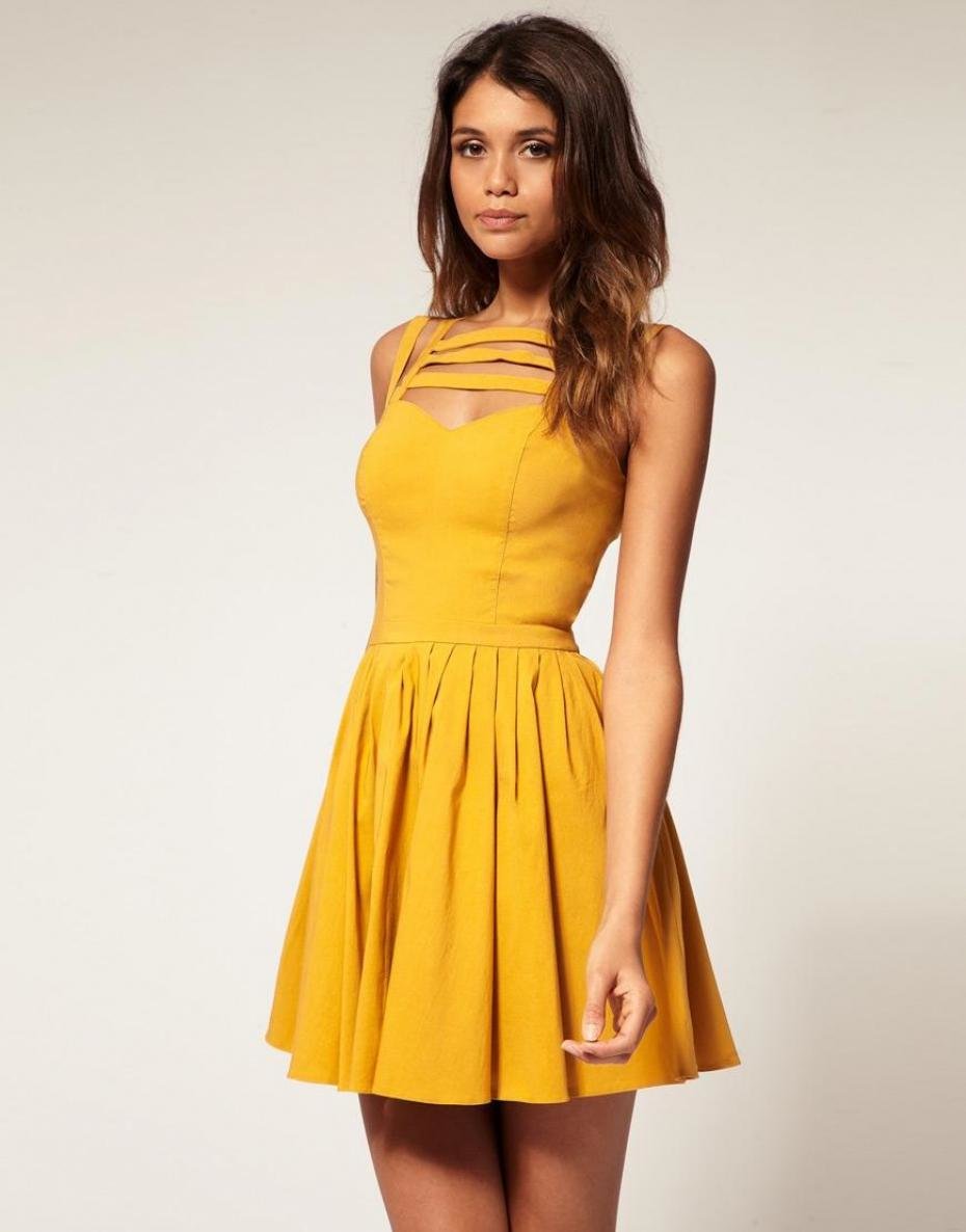 - Если девушка обладает не только стройной фигурой, но и достаточно высоким ростом, то ей не рекомендуется, выбирать слишком короткие платья еще и с открытым верхом, так как данный вариант может выглядеть вызывающим. Нужно отметить, что подобный образ допустим в качестве вечернего или торжественного, так скажем для парадно-выходного, но не для повседневной жизни.
