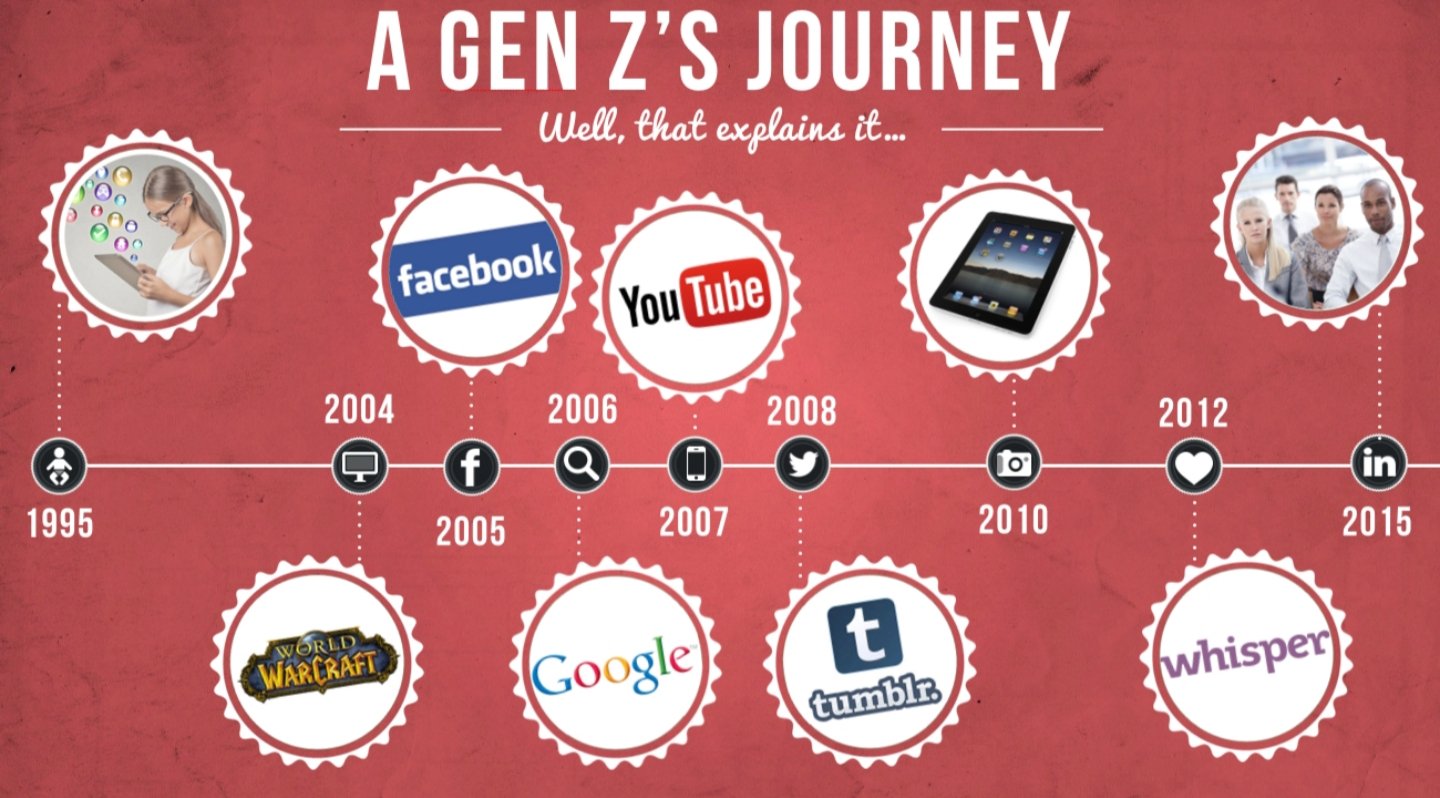 Миллениалы, используемые сейчас около 25-34 лет, были первопроходцами в области цифровых технологий когда в 2000-х годах стали свидетелями роста систем мобильной связи и обмена мгновенными сообщениями.В отличие от них, поколение Z, которому сейчас от 16 до 24 лет, родилось в уже цифровом мире. Они росли в мире молниеносного интернета, смартфонов, видео по запросу, игровых устройств и социальных сетей.