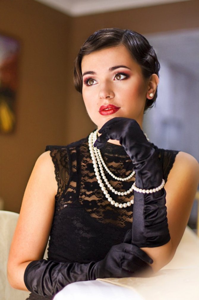 Великая депрессия в США и не только, период гангстеров, сухого закона и расслоение общества по уровню жизни – признаки 30-х годов прошлого века. Тем не менее прекрасным дополнением к бриллиантам, длинным мундштукам, боа и облегающим платьям была прическа в стиле чикаго. Модницы во всем мире до сих пор вдохновляются загадочностью и изыском близких подруг безумно состоятельных миллионеров и крутых мафиози. Улыбка и игривый взгляд милой дамы в коротком платье с заниженной талией или взгляд из-под бровей женщины вамп вряд ли оставлял кого-то равнодушным. Классика образа обитательницы бандитского Чикаго – черное платье, жемчуга и великолепный мех, длинные перчатки, скрывающие руки девушки практически до плеч, и длинный мундштук.