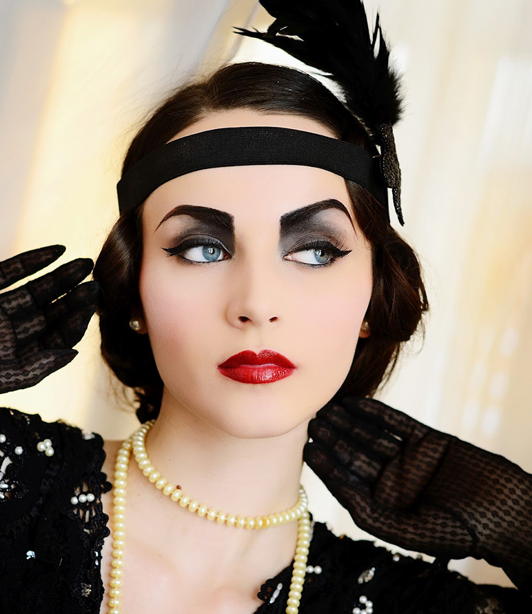 Длинные тонкие брови, яркая красная помада и укладка волос волнами с вуалью или маленькой шляпкой, приглаженная или объемная – вот он, стиль чикаго 30 годов: прически с завитками от Греты Гарбо, Марлен Дитрих, Джины Харлоу.