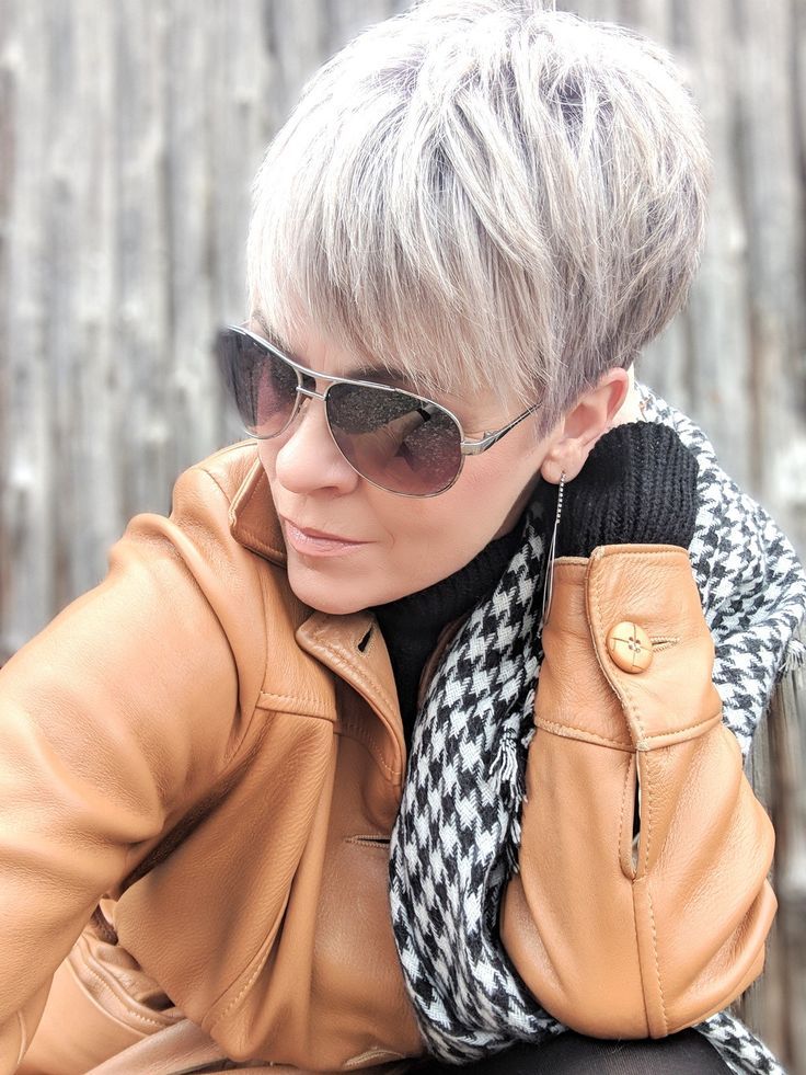 С очень короткими стрижками можно не беспокоиться о постоянном закрашивании седины. Такие прически — шикарный вариант для седых волос.