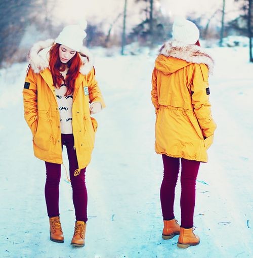 Для милитари-образа вам понадобится парка. Оттенки горчичного желательны темные и приглушенные, как бы смешанные с серым. По длине лучше подбирать модели достигающие колен или чуть выше.