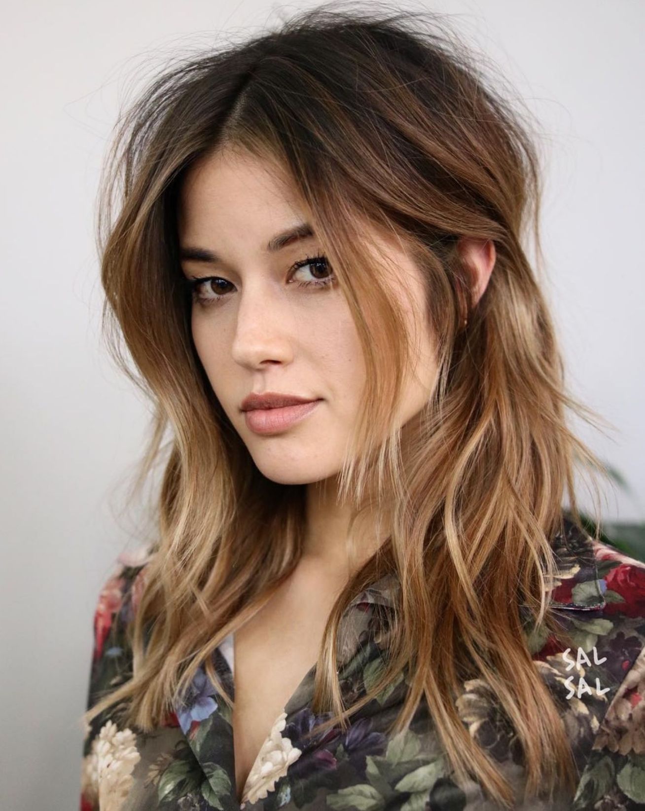 Современная лохматая стрижка создает необычный стиль, который хорошо обрамляет лицо.Идеальная длина до плеч делает прическу более густой и универсальной. Он отлично смотрится с хорошей текстурой. Так что солевой спрей станет лучшим другом любой дамы, которая его носит.