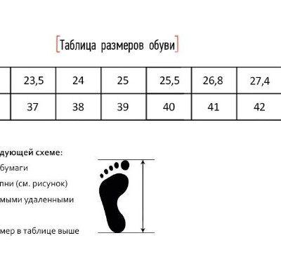 Таблица размеров тапочек и руководство по подгонке
