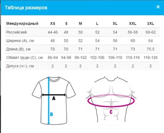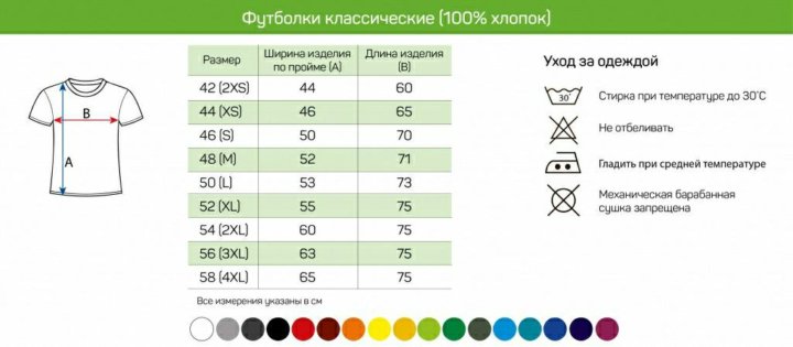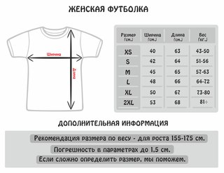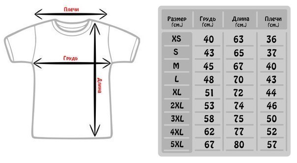 Таблица размеров (мужских, женских, детских) футболок