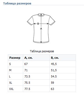 Таблица размеров мужских двухслойных футболок