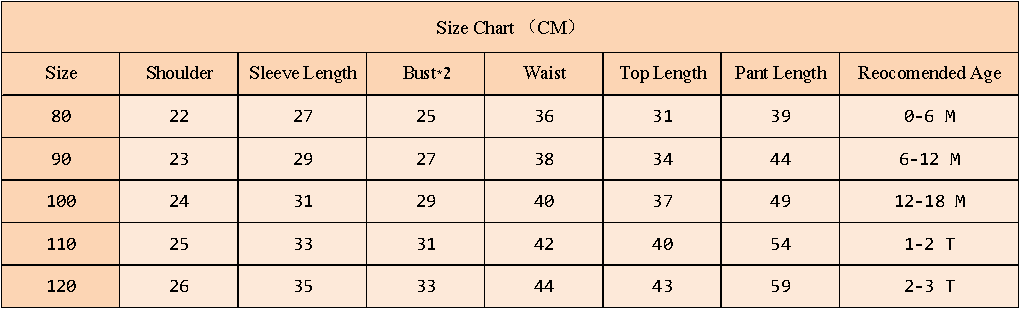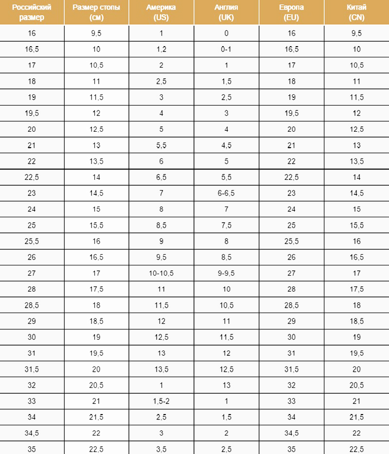 ТАБЛИЦА РАЗМЕРОВ ДЛЯ ДЕТСКИХ ТОВАРОВ