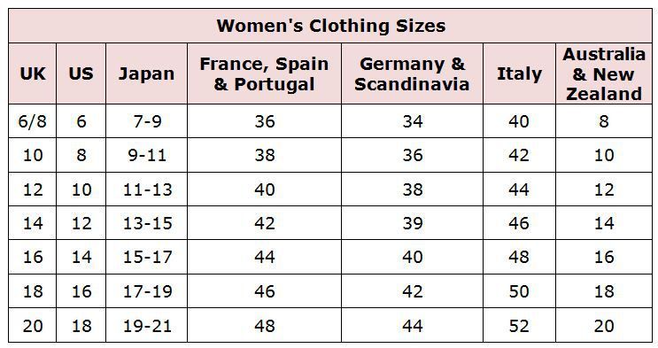 | 40/42 | XS | XS | |