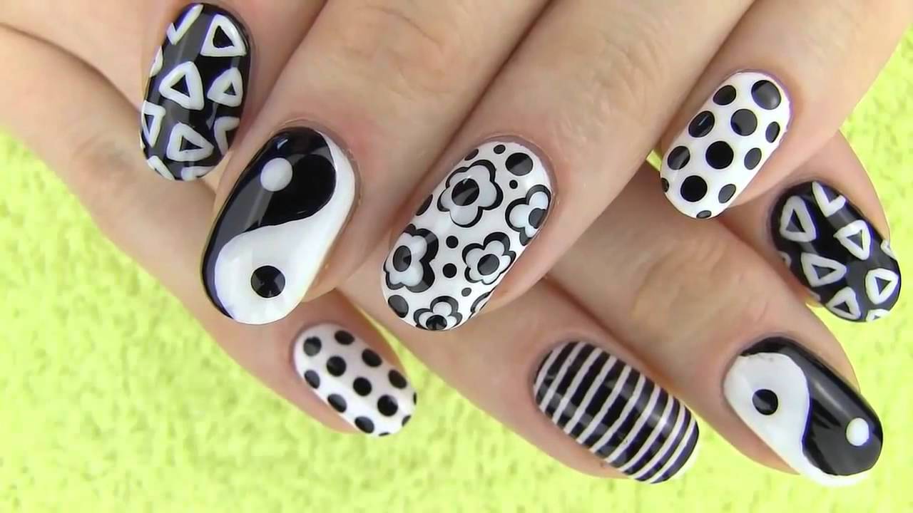 гель для ногтей, черно-белый дизайн, матовый и глянцевый рисунки, идеи с блестками