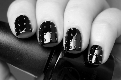 Декоративные акценты в черном маникюре позволяют сделать его более праздничным и заметным.