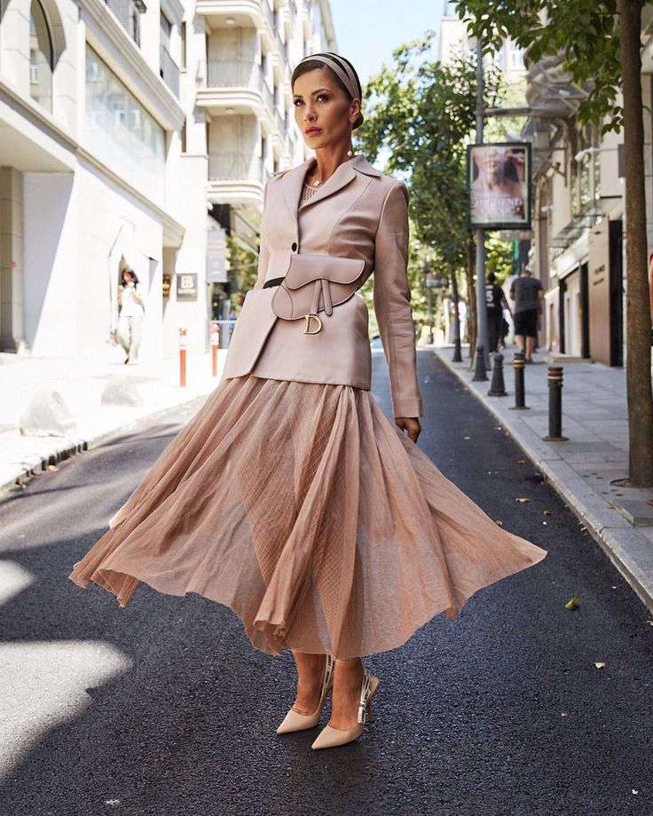 Как и наши любимые платья, юбка — неотъемлемая часть романтического образа женщины. Юбка миди становится все более популярной, потому что сочетает в себе моду и функциональность. Он достаточно длинный для удобного покрытия, но достаточно короткий, чтобы обеспечить элегантную быстроту и легкость движения. Дополните его шифоновой блузкой с открытыми плечами и изящными босоножками. Или придайте образу стильный вид с помощью смелой атласной заколки для волос.