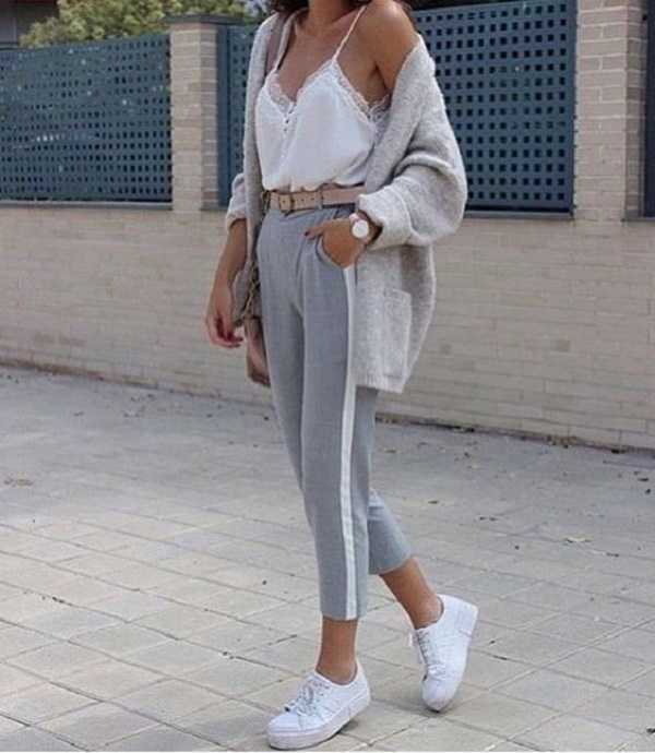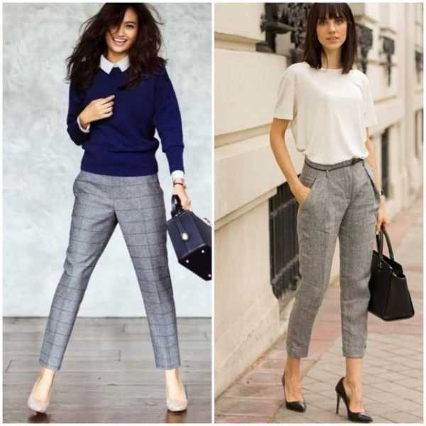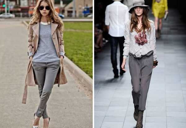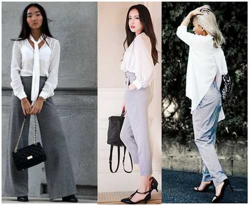 С серыми брюками можно создать множество различных комбинаций. Следующие варианты являются примерами наиболее эффектных вариантов образов:
