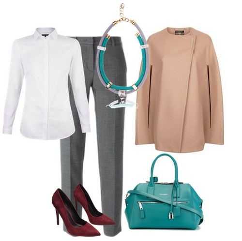 Серый превосходно сочетается с бежевым и синим – берите это на заметку при составлении небанальных рабочих аутфитов.