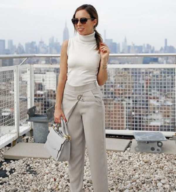 Прекрасной альтернативой рубашке может быть светлая водолазка без рукавов, которая в комбинации с расклешенными брюками выглядит очень элегантно.
