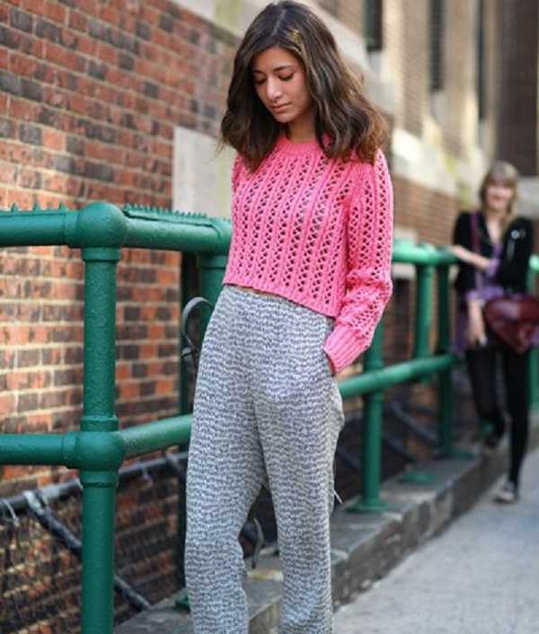 Узкие модели следует дополнять весьма объемным верхом. Это может быть пиджак или свитер. Из обуви подойдут разные модели ботинок или кроссовок. Также прекрасно будут смотреться комфортные и элегантные туфли.