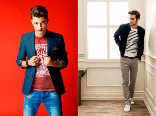 - Если хочется выглядеть более ярко, стоит надеть красно-белую рубашку и коралловый пиджак. Из обуви подойдут серо-коричневые топсайдеры. Эти модели отлично вписываются в яркие луки в стиле casual.