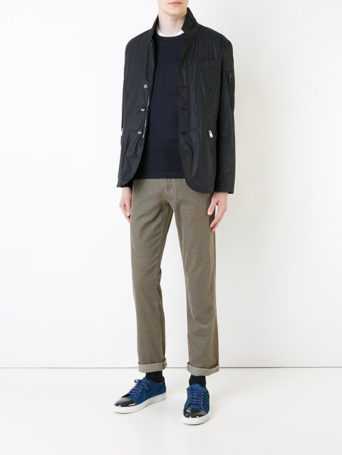 Эти брюки попали в мир мужской моды из военной униформы. Брюки-чинос выглядят весьма неформально, потому они могут дополнять повседневный стиль. Если надеть такую одежду с пиджаком, удастся получить интересный лук в стиле Smart casual. Модели шьют из мягкого хлопка.