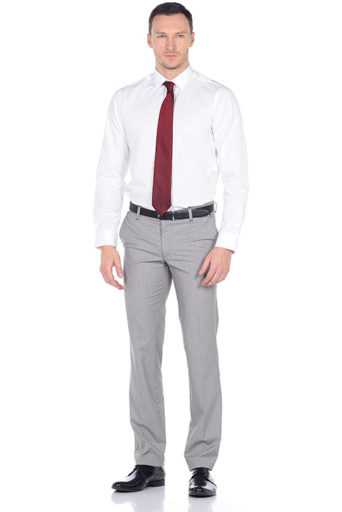 Стильные серые брюки стоит сочетать с рубашкой. Выбор конкретной модели зависит от общего стиля композиции. Если хочется получить повседневный лук, можно позволить себе весьма яркую рубашку. Чтобы выглядеть более традиционно, стоит подобрать белую или светло-голубую модель.