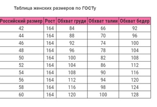 | Размер (ГОСТ) | Объем талии | Объем бюста | Объем бедер |