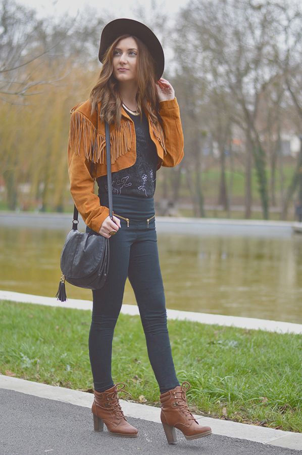 С чем можно носить осенние рыжие куртки в совсем холодную пору? Ответ тут до ужаса прост – с джинсами. Но не с любыми, т.к. с кожаными куртками наиболее стильно и сексуально смотрятся джинсы-скинни, т.е. очень узкие джинсы. Они подходят как к курткам классического кроя, так и к косухам.