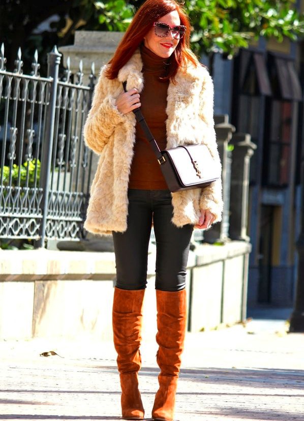 Стильное сочетание светлых рыжих ботфортов и розоватого пальто-кокона дополнят аксессуары более ярких оттенков – оранжевого, лазурного. Темно-рыжие сапоги до колена будут хороши в комбинации кожаной куртки и темно-коричневых брюк-skinny или черных джинсов.
