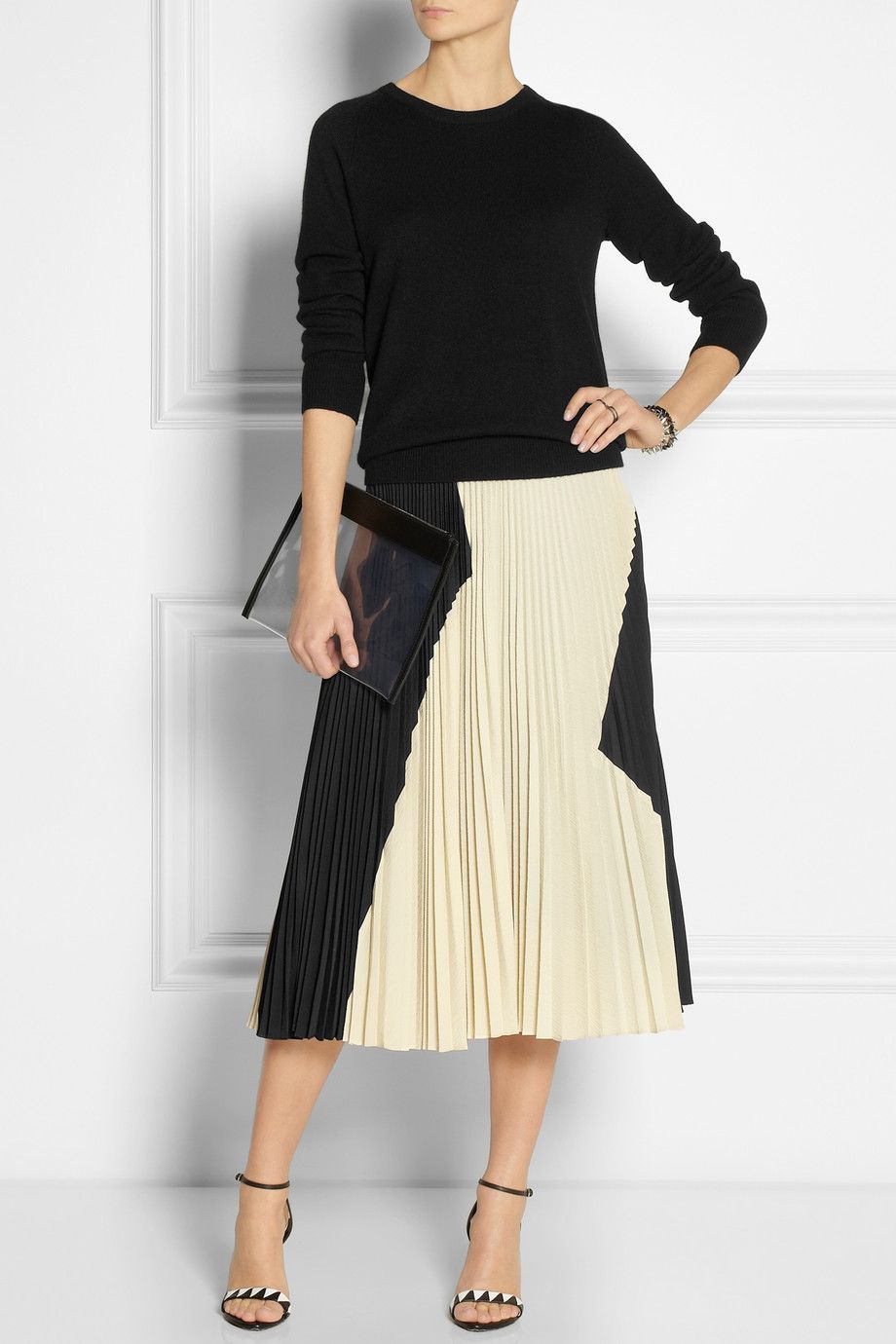С плиссированной юбкой можно создать повседневный, коктейльный, спортивный образ. В офис надевают не слишком длинное миди в сочетании с блузкой или топом и жакетом. Неформальный лук хорошо дополнить футболкой и сумкой кросс-бади. Модные принтованные модели лучше комбинировать с однотонным верхом.