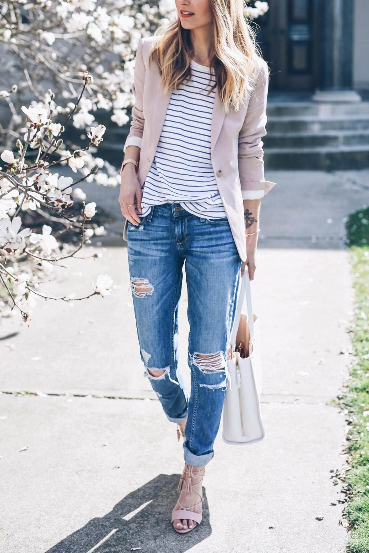 Также уместны кардиганы в пастельных оттенках. Укороченным брюкам из денима подойдут гламурные босоножки Т-образной формы. Можно подбирать модели как рваные, с вышивками, орнаментами, так и строгие, классические. Тотал лук нынешнего сезона – розовые балетки, например, под бойфренды.