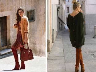 Для городского стиля можно надеть классические сапоги с расклешенной юбкой, ажурным пуловером и шарфом с принтом. Самым эффектным станет образ с одеждой изумрудного оттенка. Интересным и оригинальным ансамблем станет стиль с вязаными изделиями: удлиненными свитерами и короткими платьями.