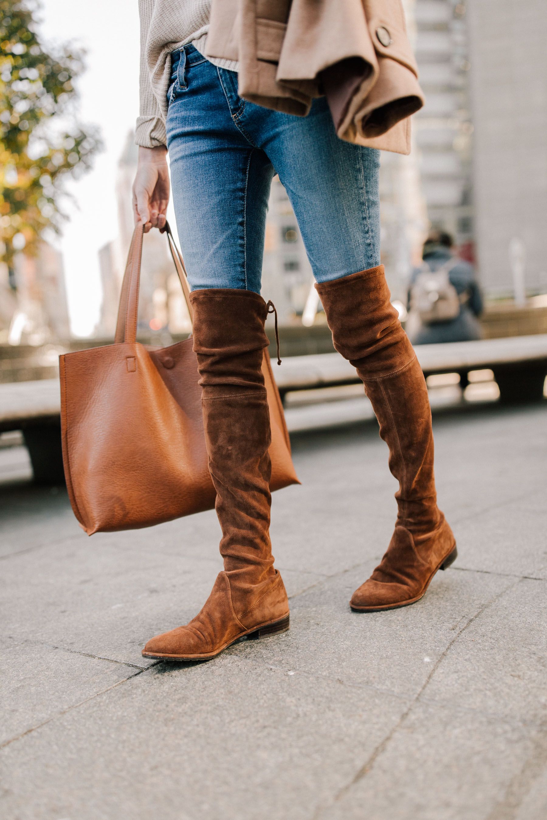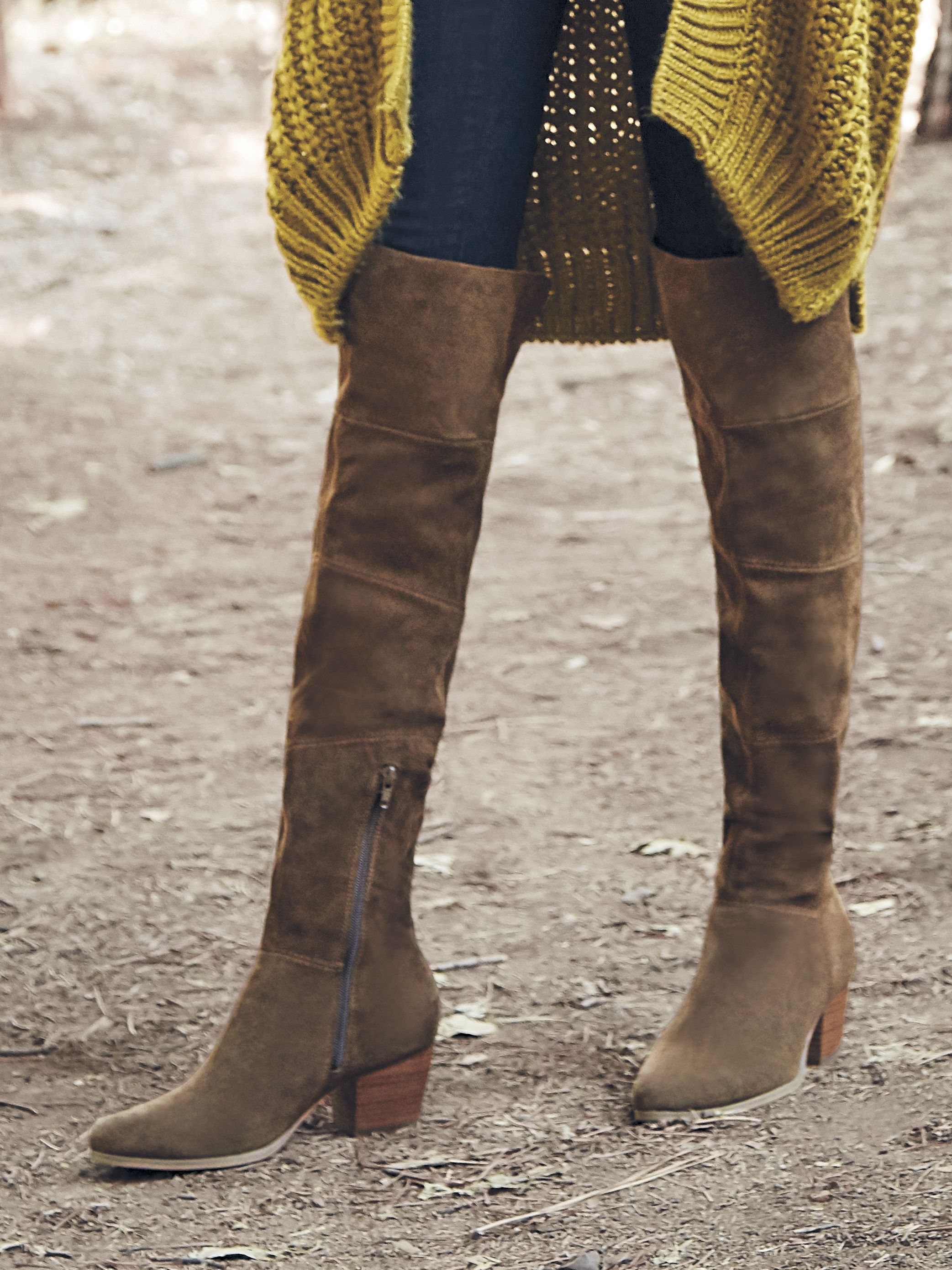 Замшевые сапоги до колена все время обожают девушки.Как сочетать замшевые ботинки? Просто сохраните такой же цветовой тон для одежды.