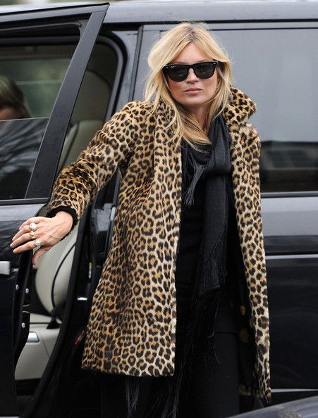 Кейт Мосс беспроигрышно подбирает свой гардероб под леопардовую шубу или полушубок. Нейтральные базовые цвета и минимум аксессуаров. Короткая шуба ей очень идет, она делает акцент на длинные и стройные ноги звезды.