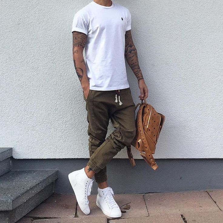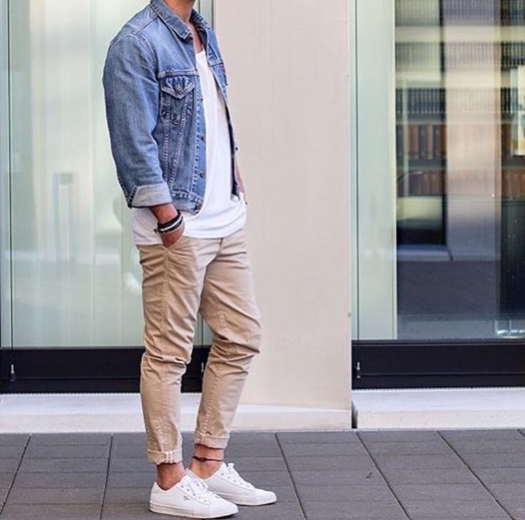 Думаете, как носить кроссовки с чем-то более нарядным, чем джинсы? Не бойтесь надевать свои любимые кроссовки с полированными мужскими брюками чинос. Границы между повседневным и нарядным более размыты, чем когда-либо, так почему бы не воспользоваться всеми преимуществами? Если вы хотите создать холщовые кроссовки с прямой шнуровкой, возьмите брюки чинос цвета хаки с зауженными штанинами.