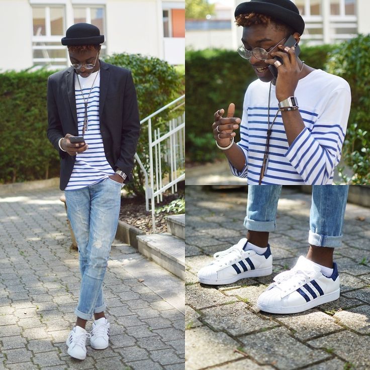 Наиболее искушенные в вопросах моды юноши предпочитают варианты, когда используются классические брюки с кедами. Дополнить гардероб можно пиджаком черного цвета. Особенно часто такой стиль выбирают люди младшего поколения.
