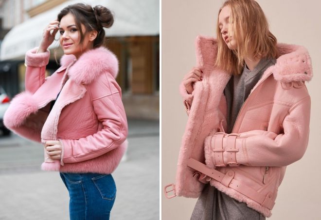 Однозначно, розовая дубленка с мехом белого цвета — роскошный и нежный вариант. Эта вещь будет отлично смотреться с белыми аксессуарами и одеждой. Такой лук не совсем практичный, но создаст впечатление о достатке, статусе и высоком социальном положении.