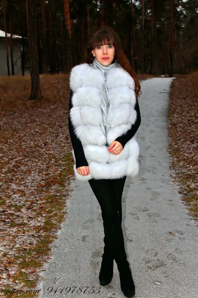 Жилет из меха белой лисы/Жилет из меха лисы Shadow/Женский мех лисы