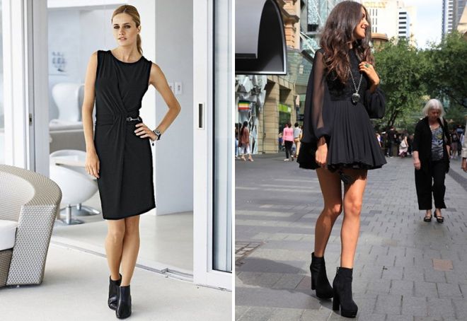 Если вы идете в торговый центр или на ужин, ботильоны или туфли на массивной танкетке придадут вашему образу утонченный образ, не отвлекая от черного платья.